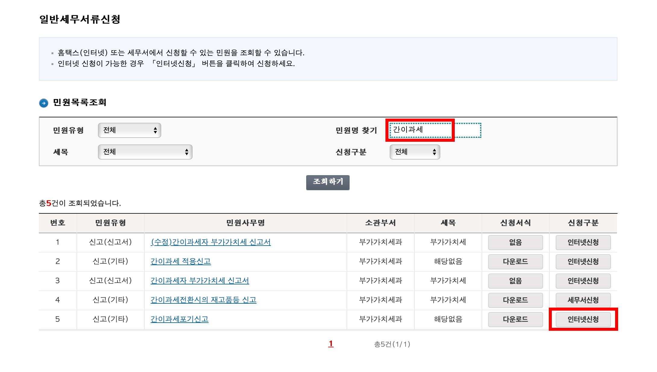 - 간이과세를 검색하고 간이과세 포기신고 [인터넷신고]를 진행