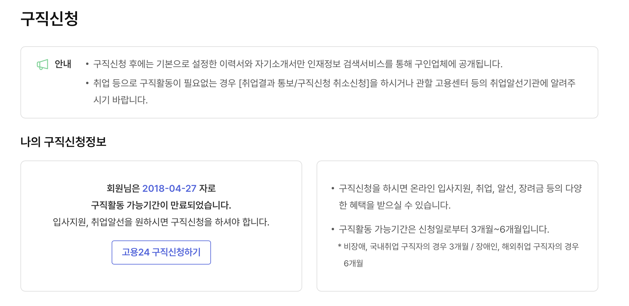 1. 실업자로 신청을 할 경우 고용 24에 구직등록이 되어있어야 합니다.