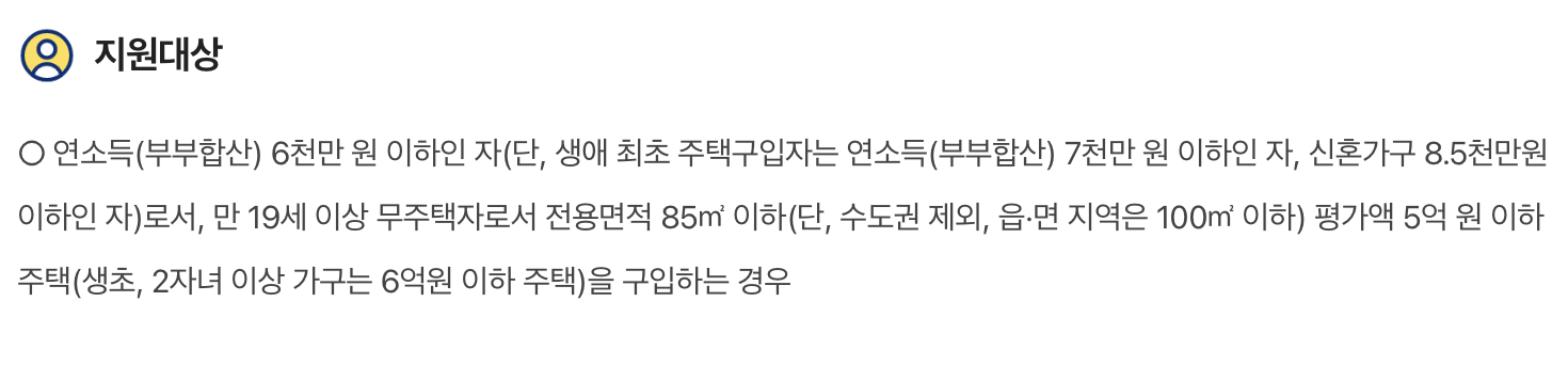 - 소득 요건 제한: 소득에 따라 대출 가능 여부가 결정되기 때문에 일정 이상의 소득이 있는 경우 대출 신청이 어려울 수 있습니다.