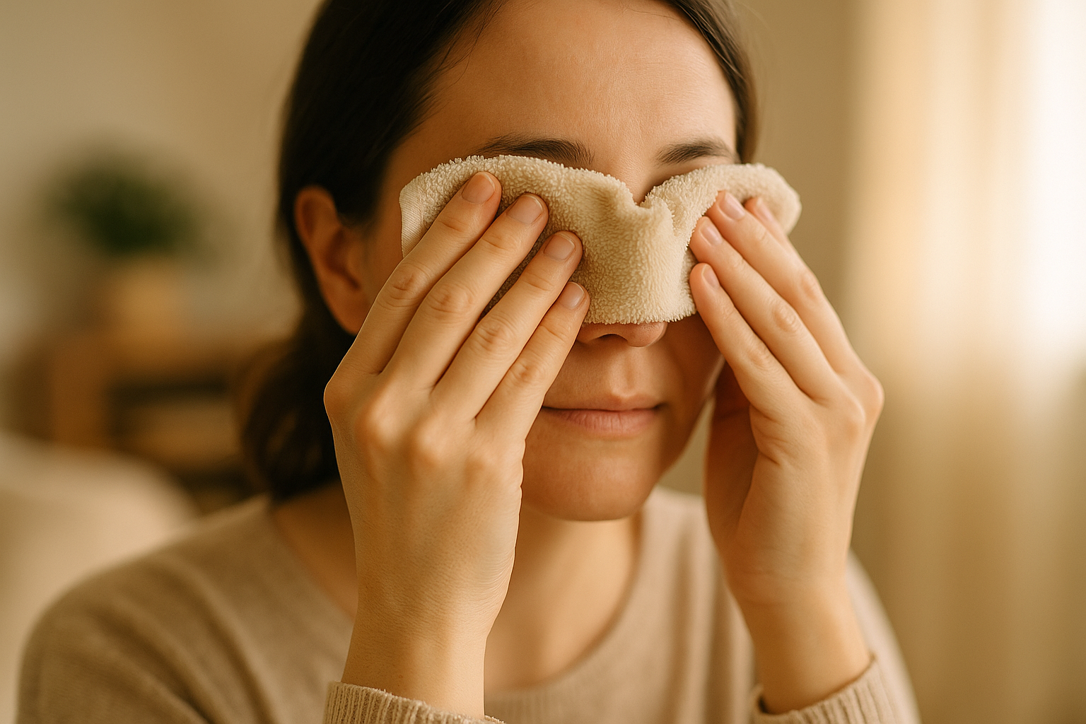 오늘 살펴본 수면·스트레스·카페인 조절, 화면 사용 관리, 온찜질·인공눈물 같은 7단계 셀프 케어만 실천해도