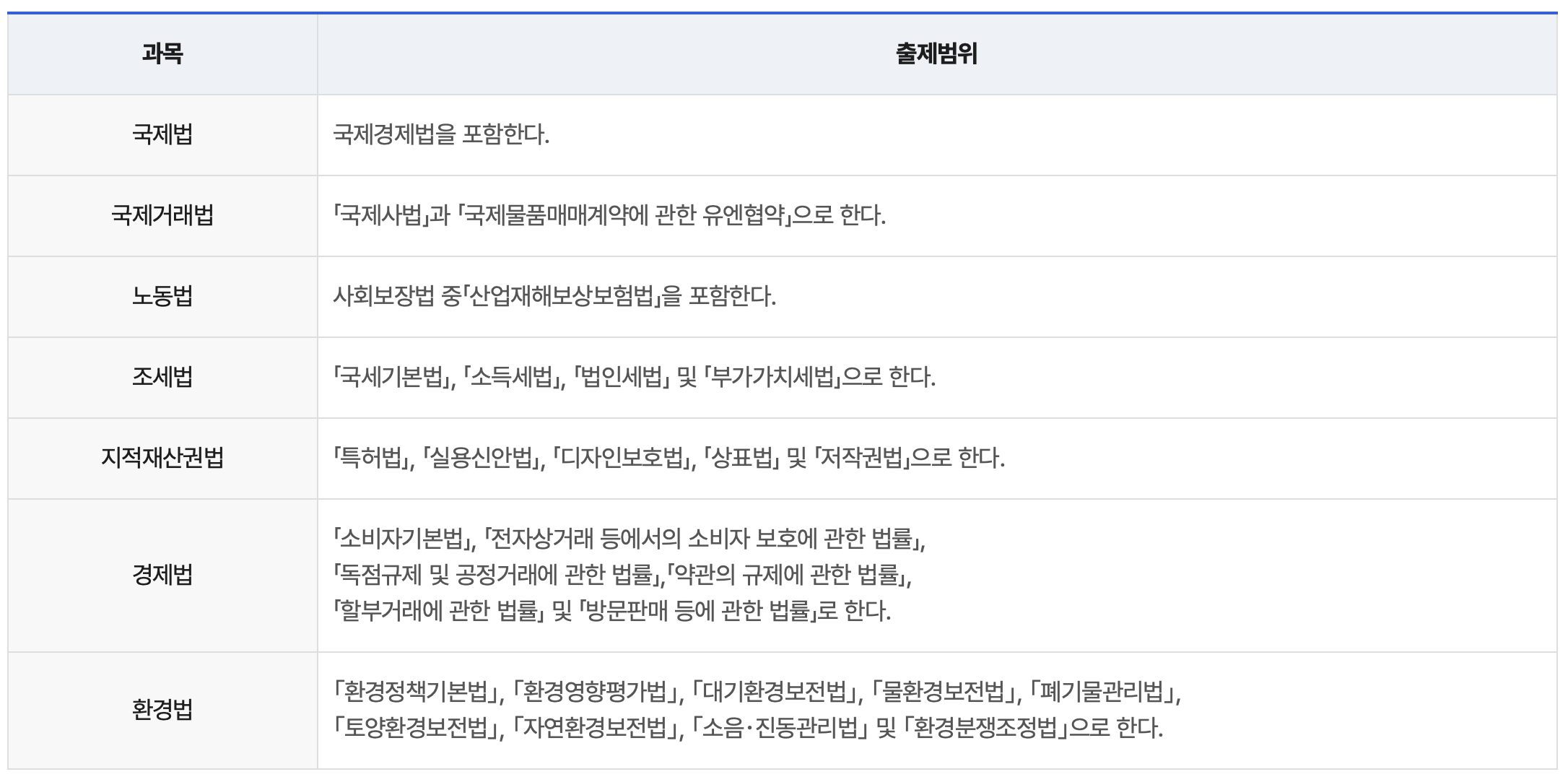 • 공법(헌법 및 행정법 분야의 과목)