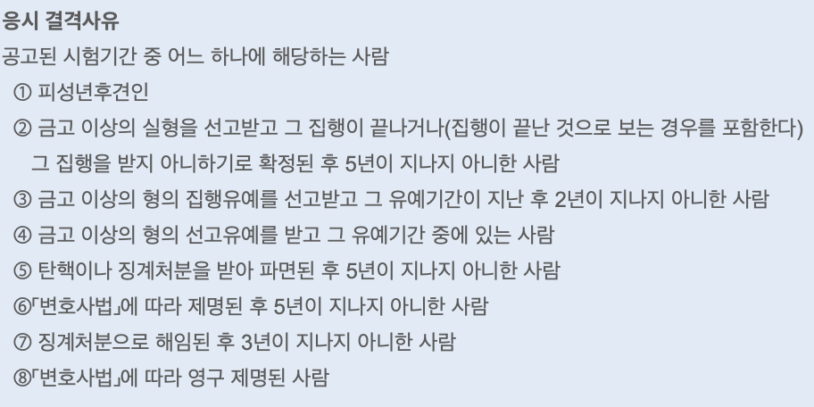 아래에 해당될 경우 응시를 할 수 없습니다.