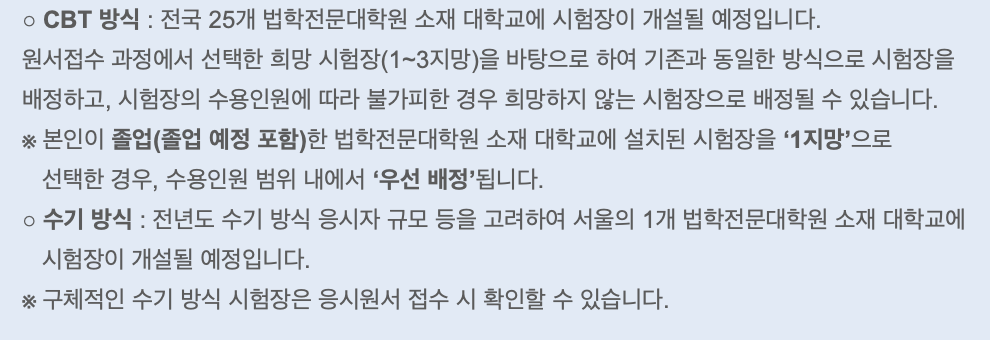 3. 논술형 시험은 CBT방식과 수기 방식 중 하나를 선택하며, 이에 맞게 시험장을 배정 받습니다.
