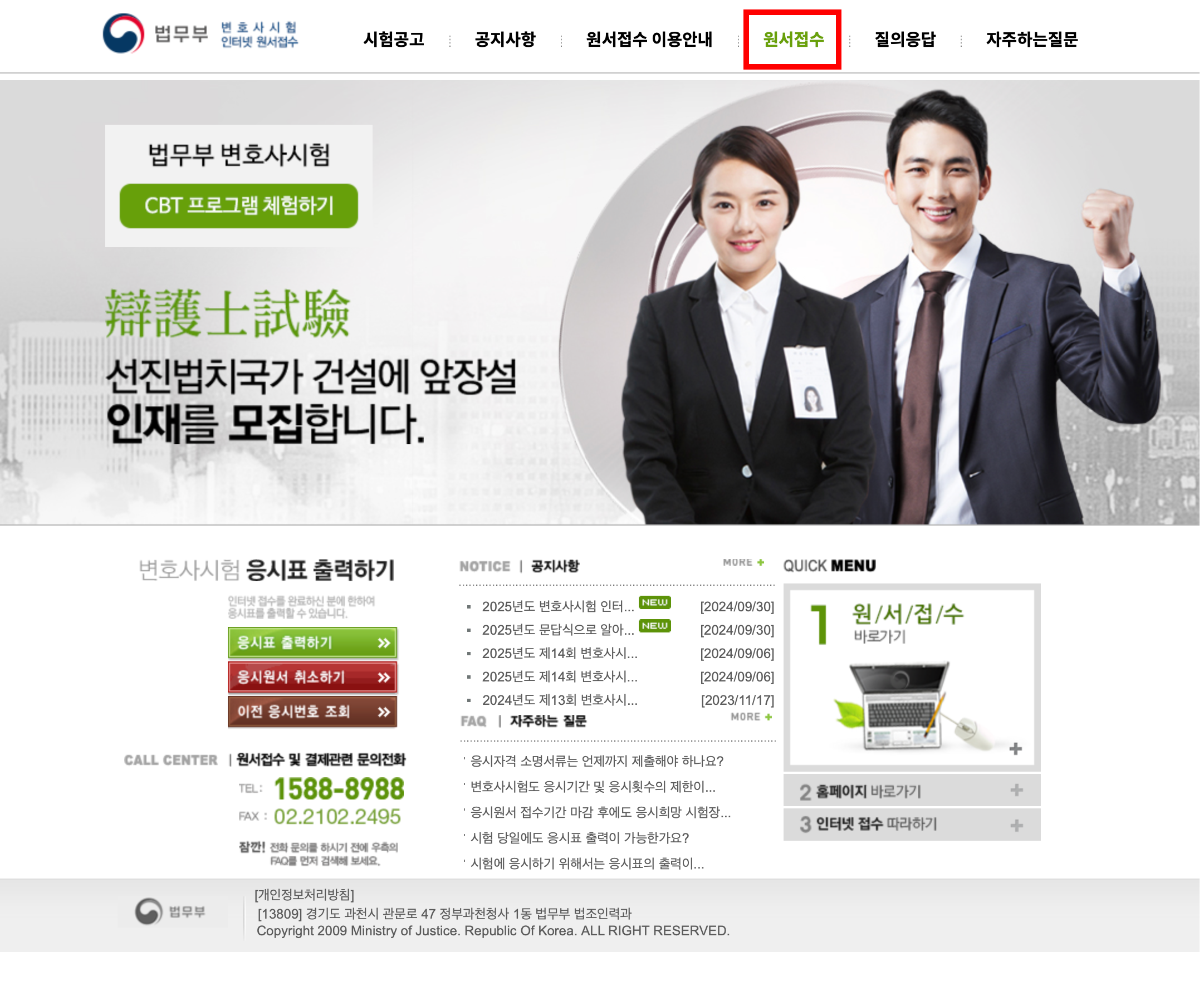 법무부 변호사 시험 인터넷 원서접수 바로가기