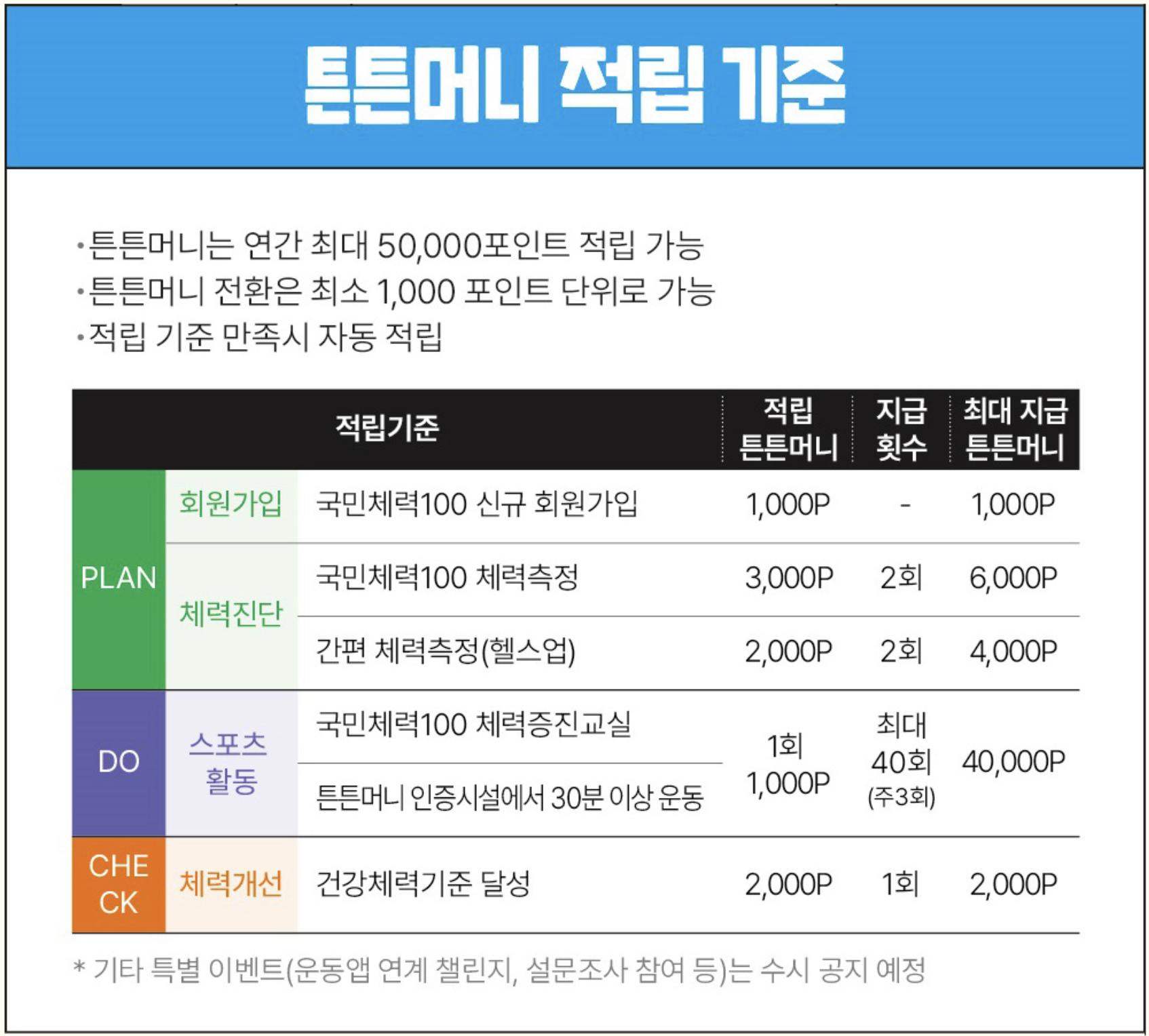 체력인증센터에서 체력 측정에 참여하면 3,000포인트가 적립되며,
