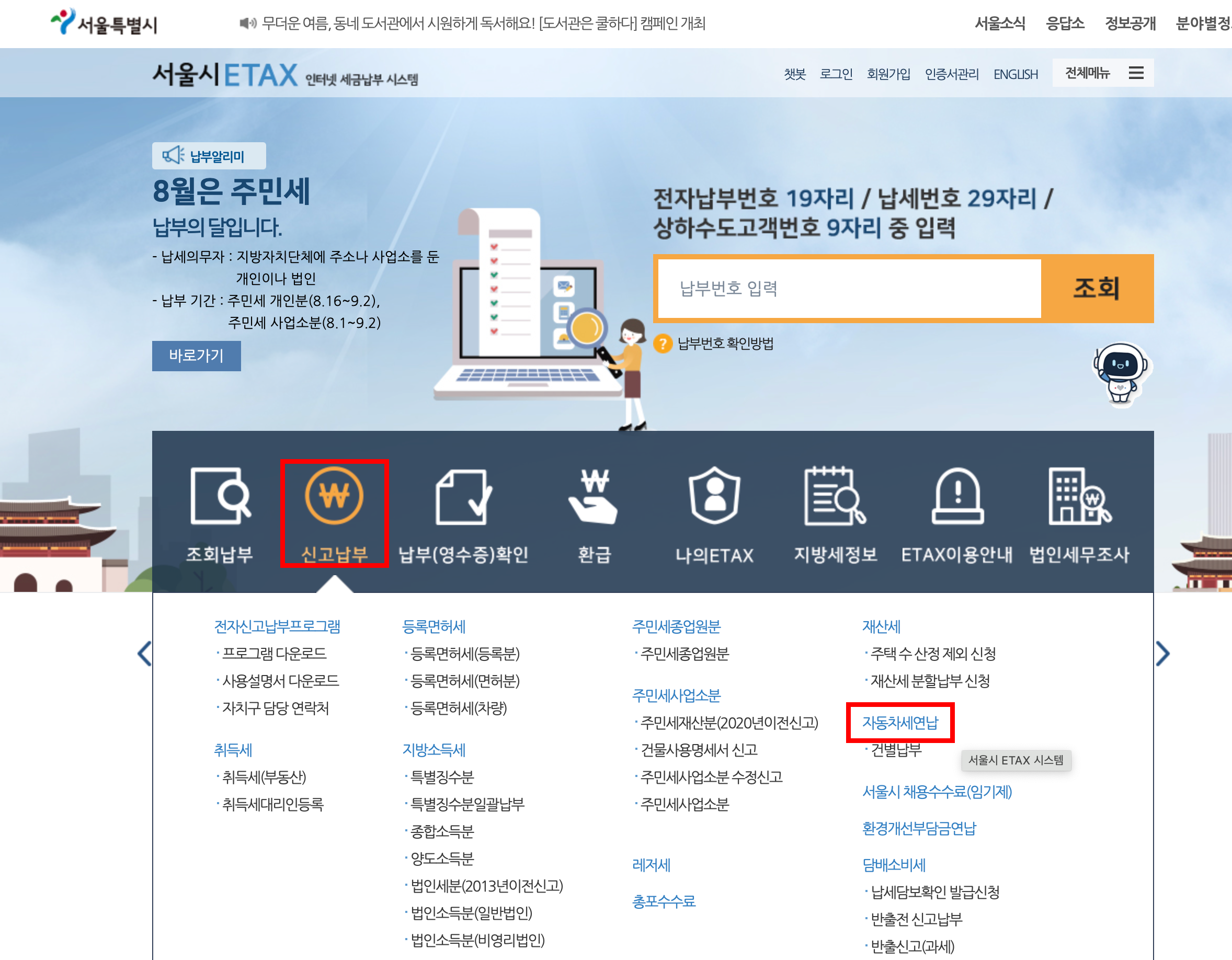 서울시 거주자는 이택스(ETAX) 사이트와 스마트폰앱 STAX에서
