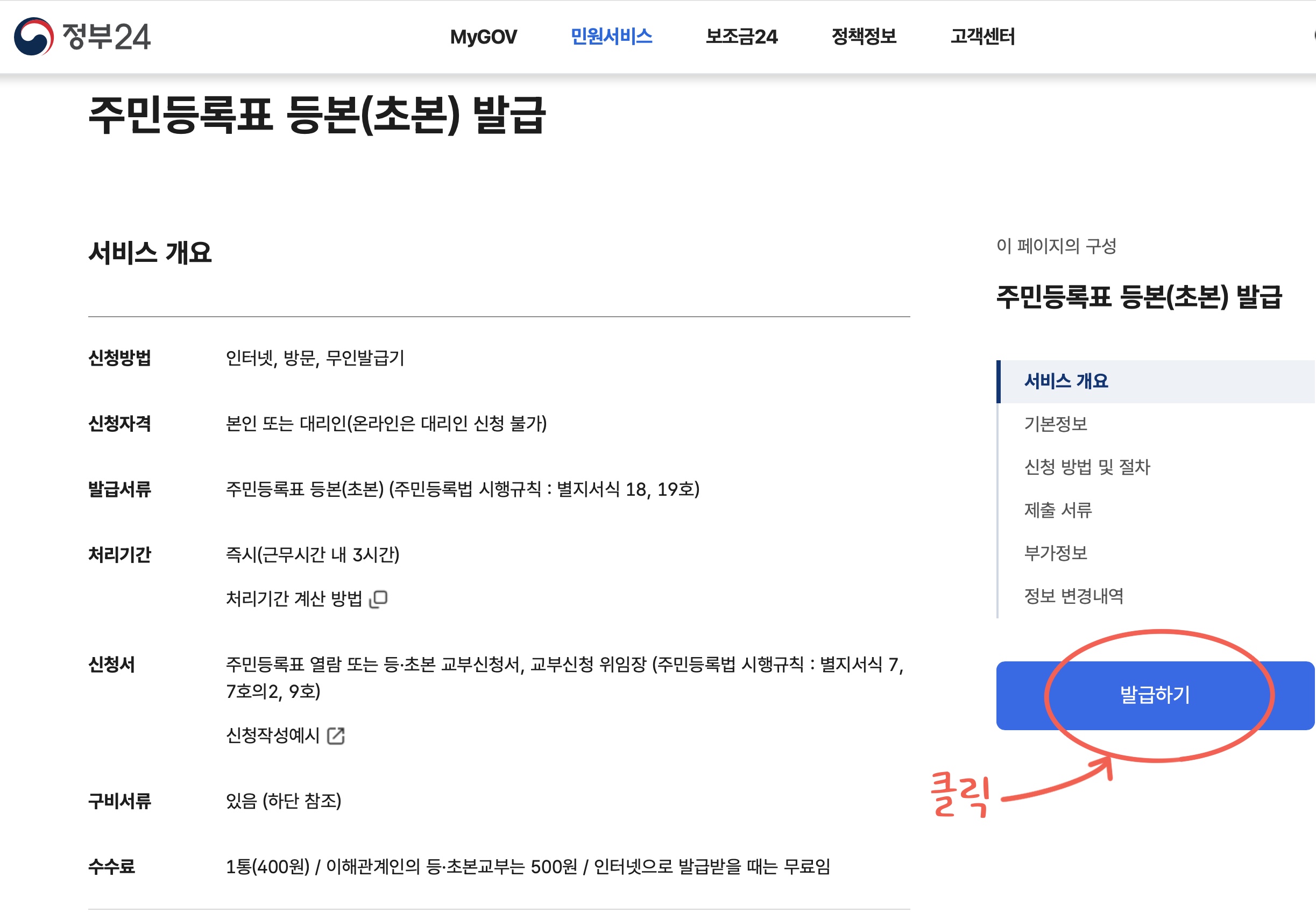 시,군,구, 읍, 면, 동 주민센터에 직접 방문하여 발급을 받을 수 있지만,