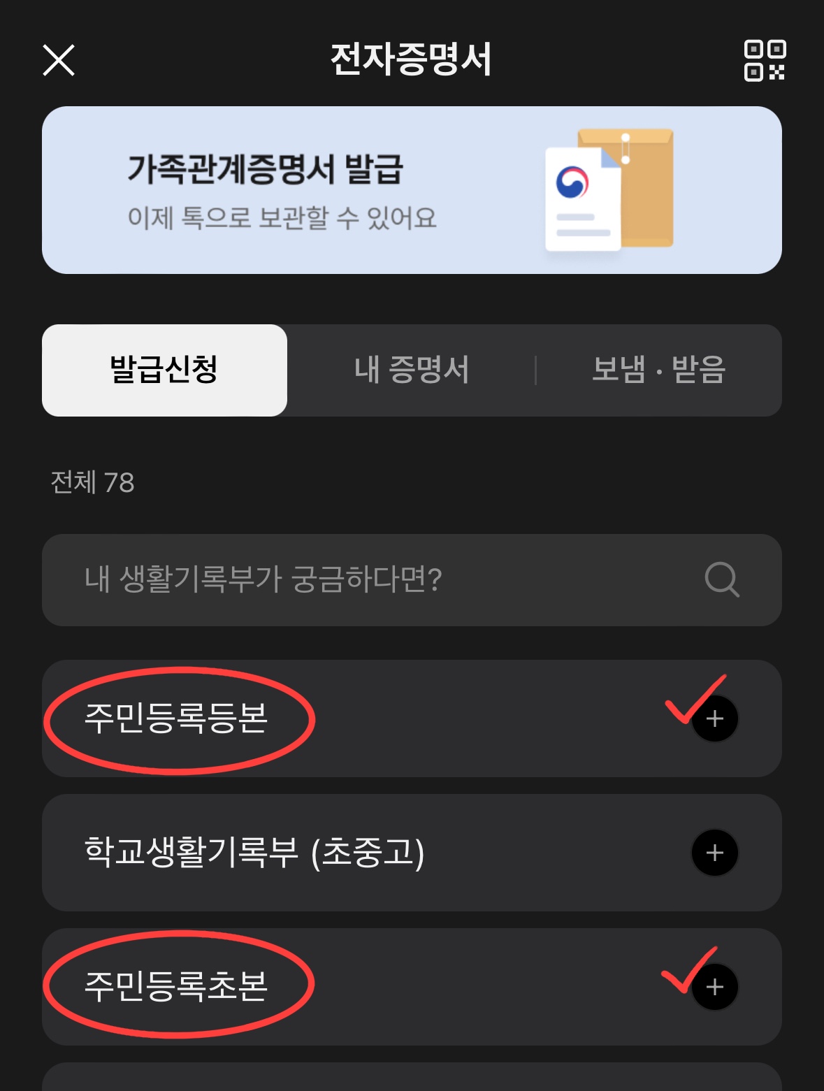 카카오톡을 통한 주민등록등본 및 초본 발급 방법