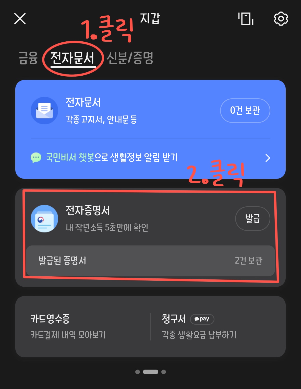 3. 상단 메뉴의 [전자문서]를 선택합니다.
