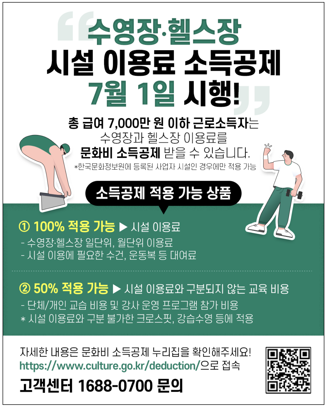 2025년 7월 1일자로 신설된 ‘체육시설 이용료 소득공제’는 문화비 소득공제 범위를 넓혀
