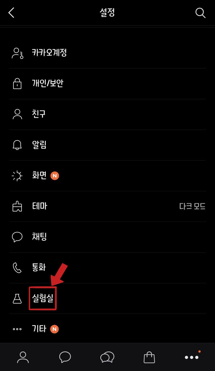 1. 첫 번째로 카카오톡 앱에 들어가셔서 더보기란을 클릭합니다.