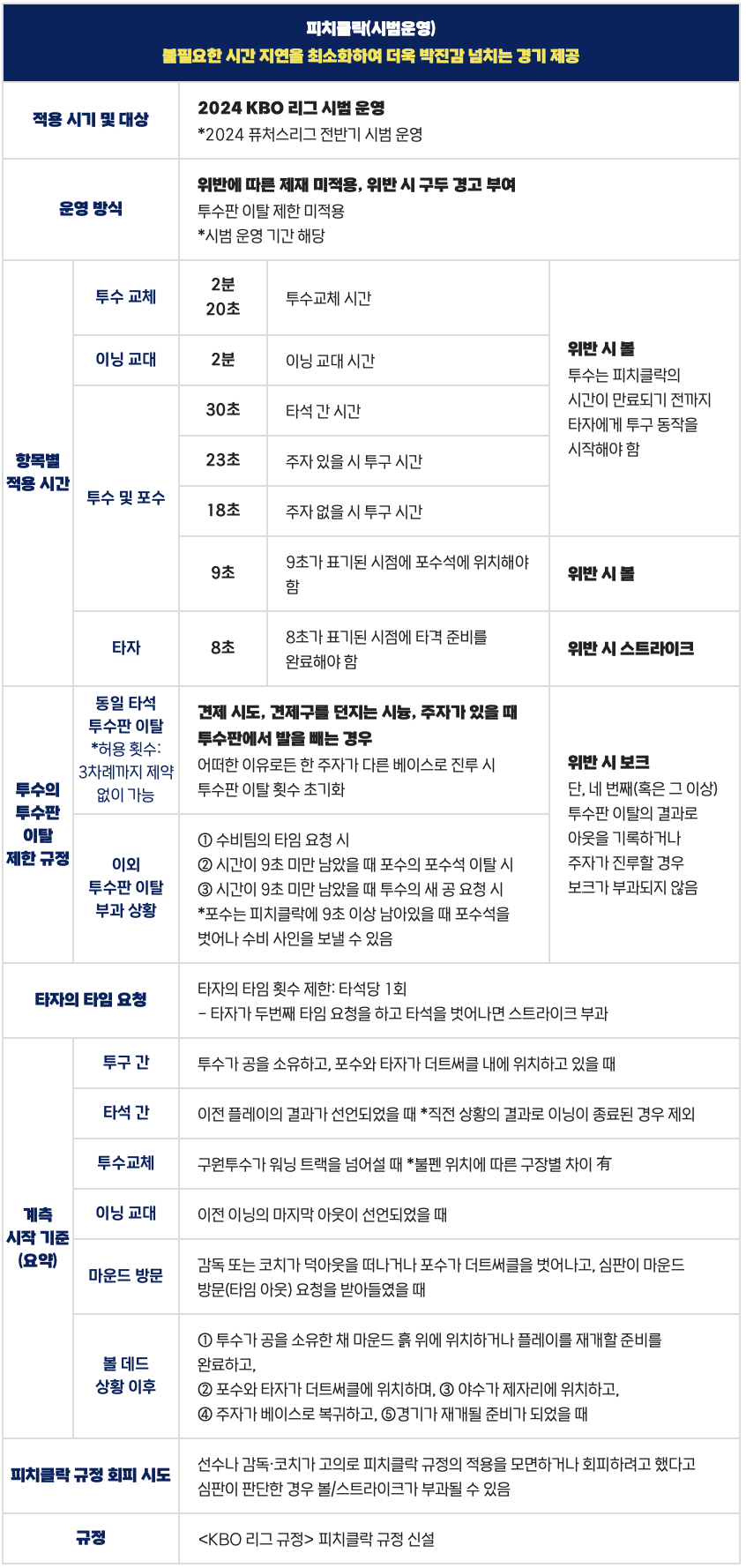 피치클락은 투수가 타자에게 투구 동작을 시작해야 하는 시간을 제한하는 규칙으로,